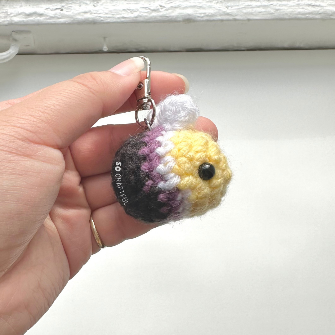 Crochet Non-Binary Bee Keychain